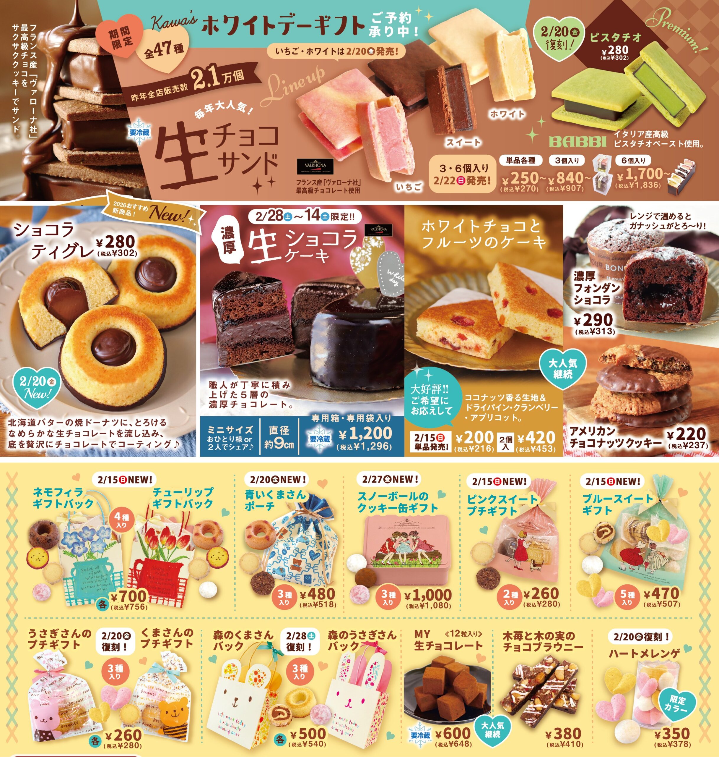 毎年大人気の「生チョコサンド」や、この時期だけの様々なラインナップが登場です🍫♪